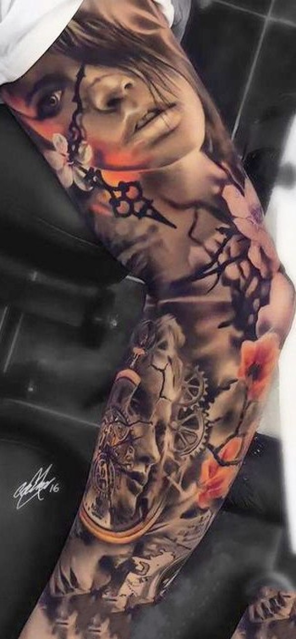 欧美花臂纹身_22张霸气黑灰欧美大黑花臂纹身图案作品图片