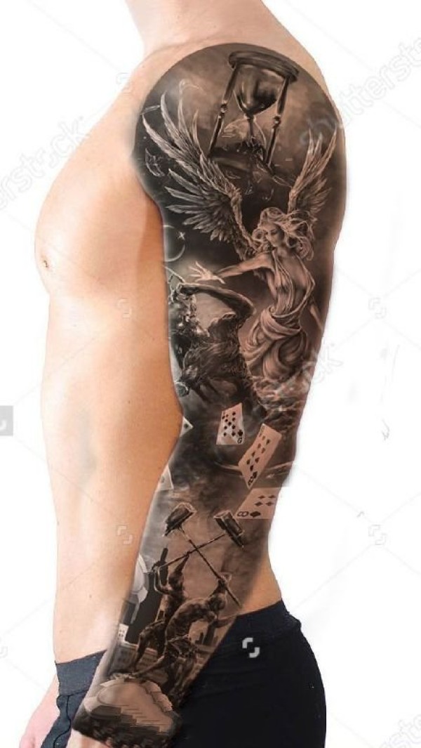 欧美花臂纹身_22张霸气黑灰欧美大黑花臂纹身图案作品图片