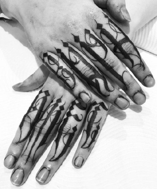 几张深黑色的奇卡诺花体字创意设计纹身图案