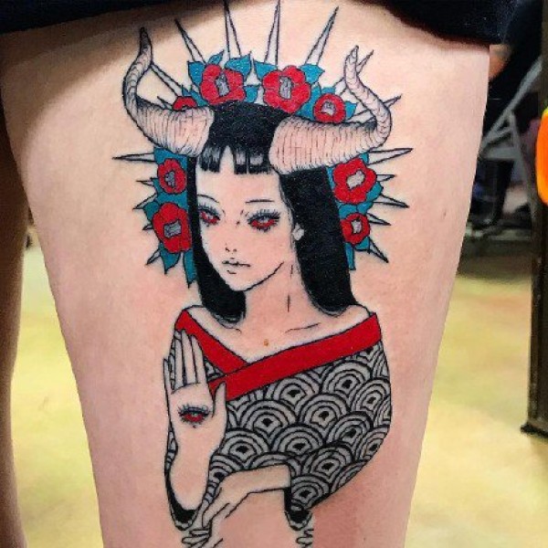 般若面具纹身 时尚而又个性的般若面具纹身图案