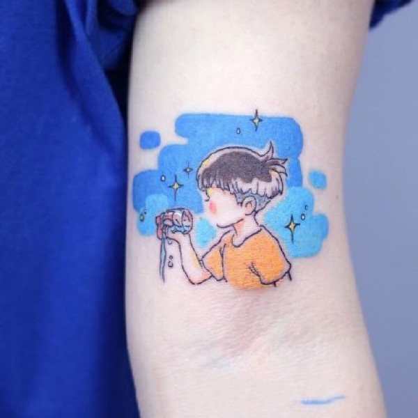 小清新涂鸦纹身:27张简约清新的小彩色涂鸦纹身图案