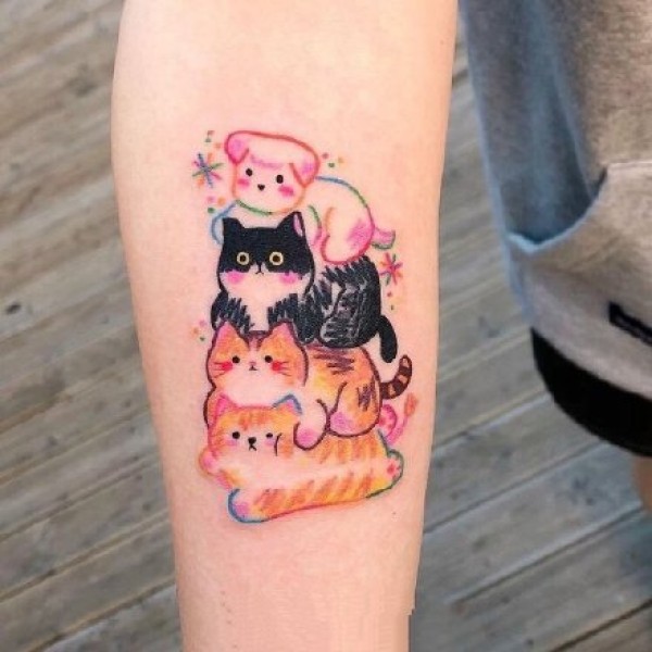 小清新涂鸦纹身:27张简约清新的小彩色涂鸦纹身图案