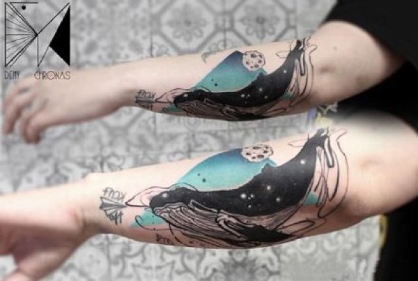 9张唯美的星空和鲸鱼搭配的纹身图案
