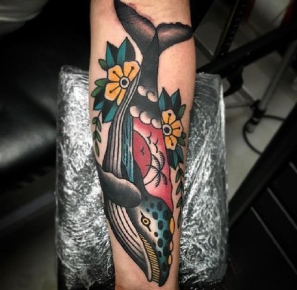 9张漂亮的水彩色鲸鱼纹身图案作品