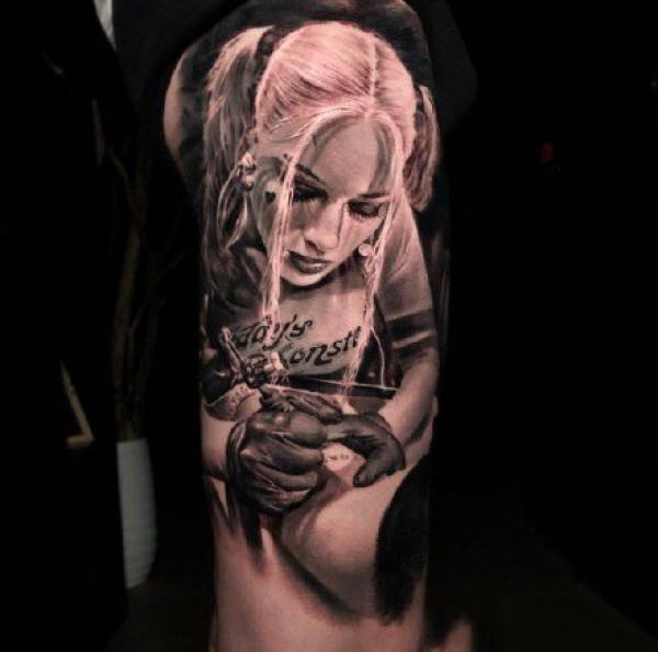 一套欧美动画片角色写实黑灰手臂纹身作品