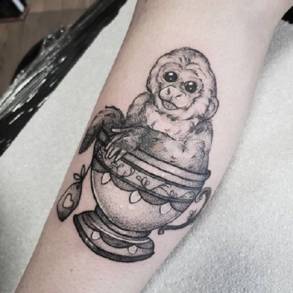 猴子纹身:好看的一组猴子猩猩主题的黑灰纹身图案