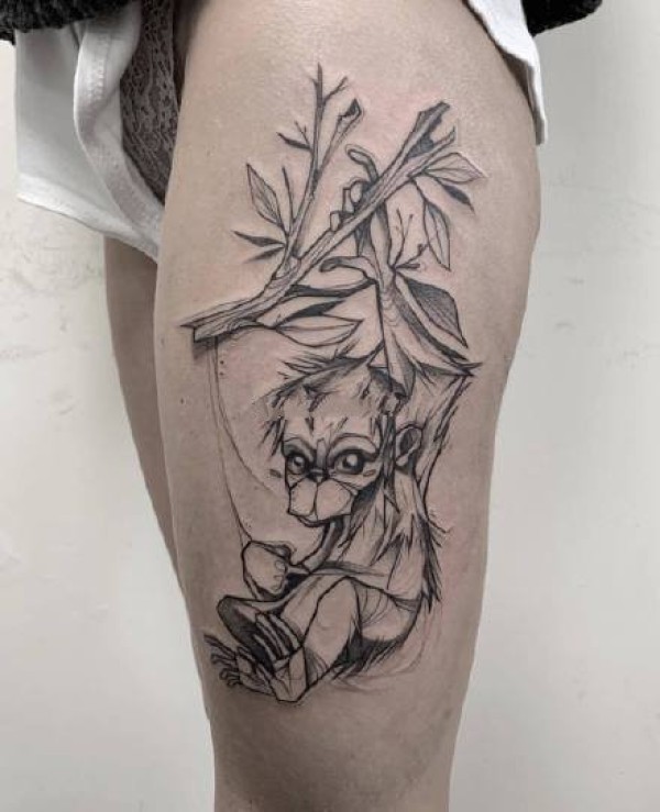 猴子纹身:好看的一组猴子猩猩主题的黑灰纹身图案