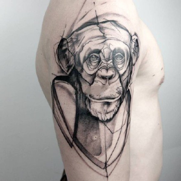 猴子纹身:好看的一组猴子猩猩主题的黑灰纹身图案