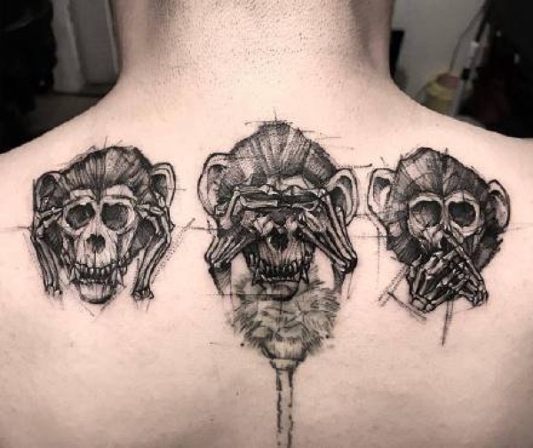 不听不看不说的猴子纹身