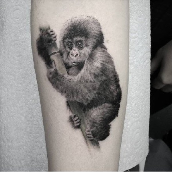 猴子纹身:好看的一组猴子猩猩主题的黑灰纹身图案