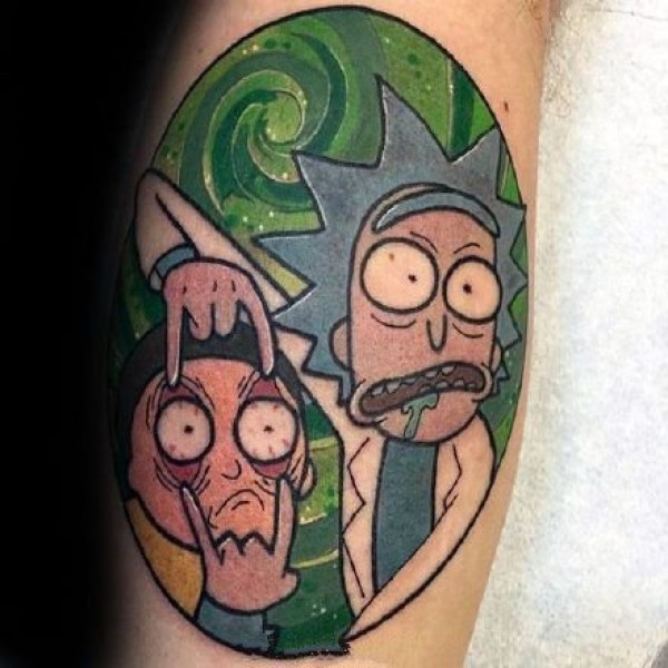 9张美国卡通动画rick and morty的彩色卡通纹身图案
