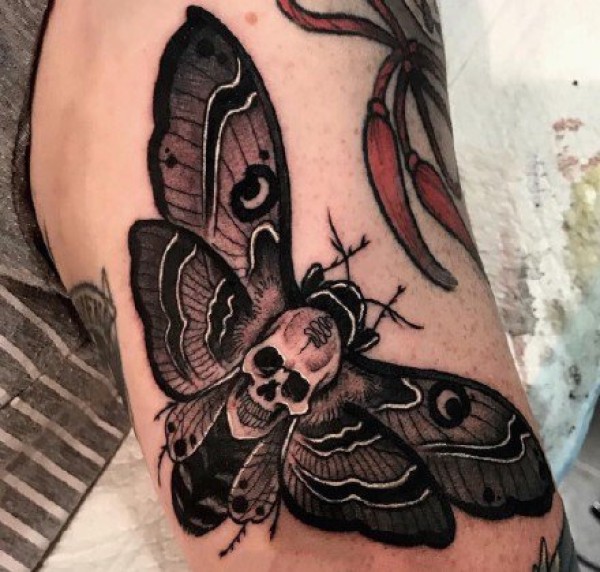 飞蛾搭配骷髅的一组school纹身图案