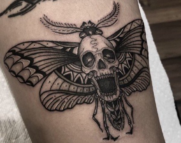 飞蛾搭配骷髅的一组school纹身图案