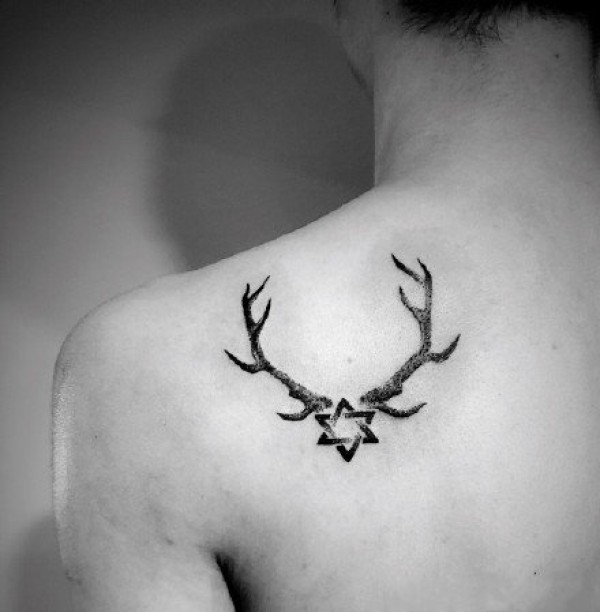 漂亮的一组黑灰鹿角纹身图片欣赏