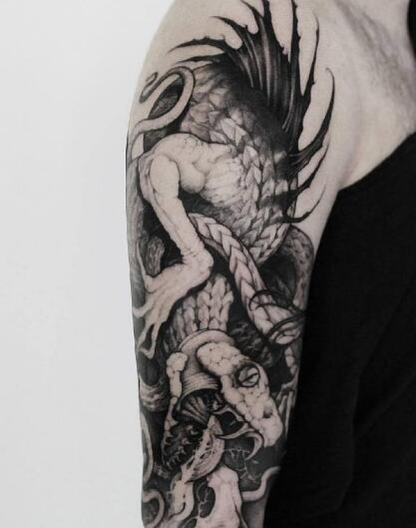 龙纹身手稿_一组老传统黑灰龙手稿纹身图案