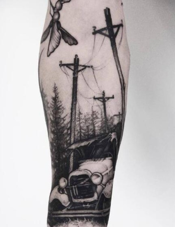 黑灰包小臂的几张点刺纹身图案