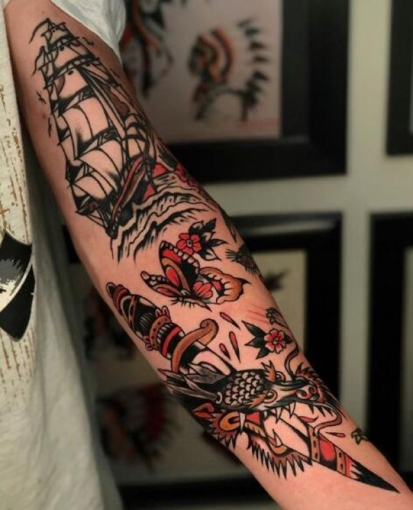 oldschool小臂纹身 18款彩色oldschool风格的小手臂纹身图