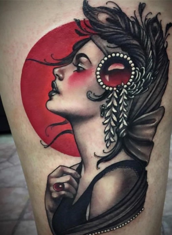 9张school风格的漂亮女人侧颜纹身图片