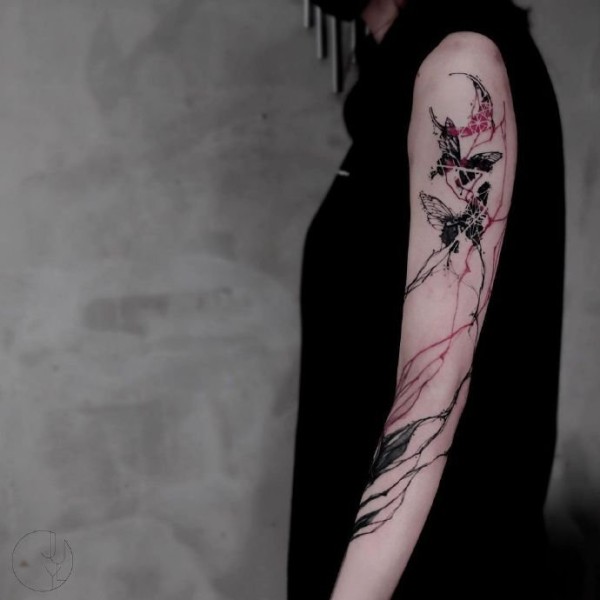 水彩泼墨纹身 手臂上水彩泼墨纹身几何纹身图案