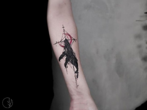 水彩泼墨纹身 手臂上水彩泼墨纹身几何纹身图案