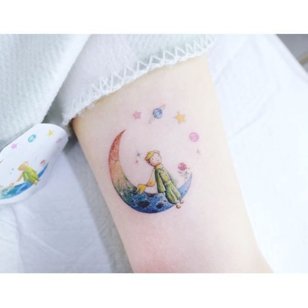 小清新的女生彩色月亮纹身图案作品9张