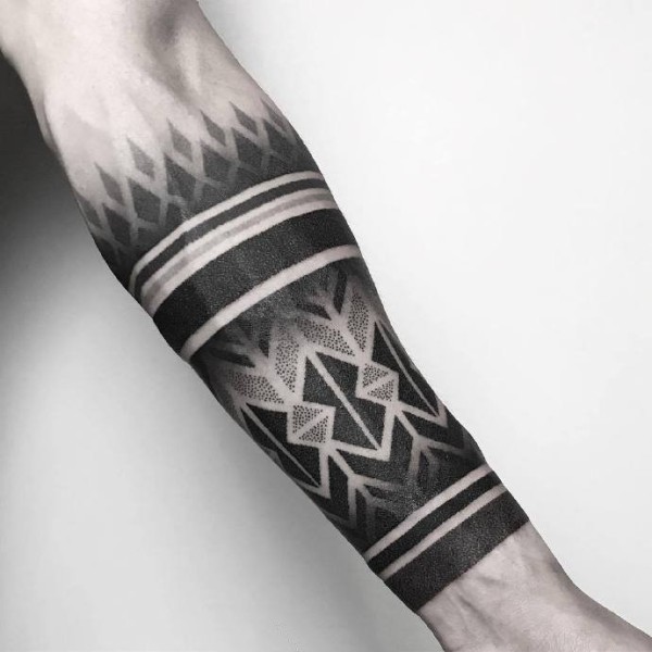 几何点刺的9张臂环纹身图片