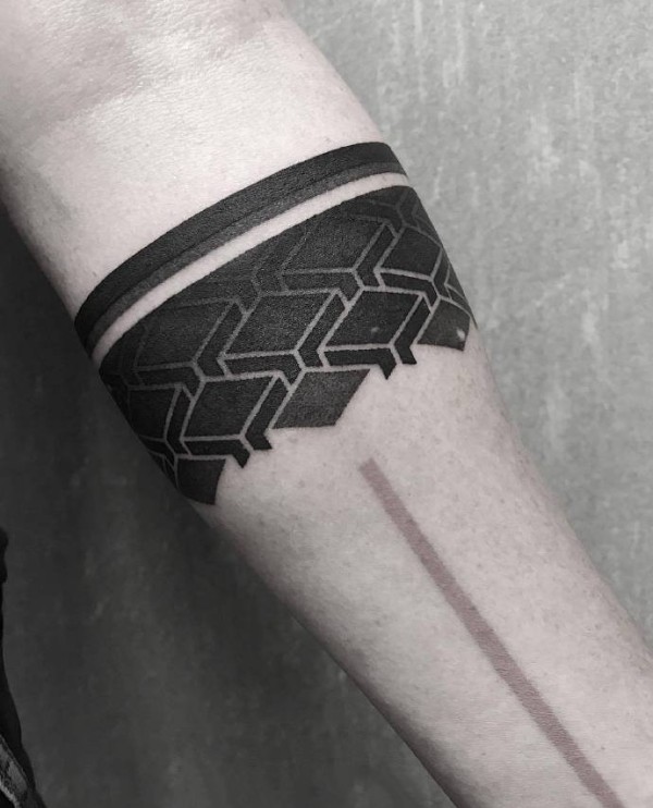 几何点刺的9张臂环纹身图片