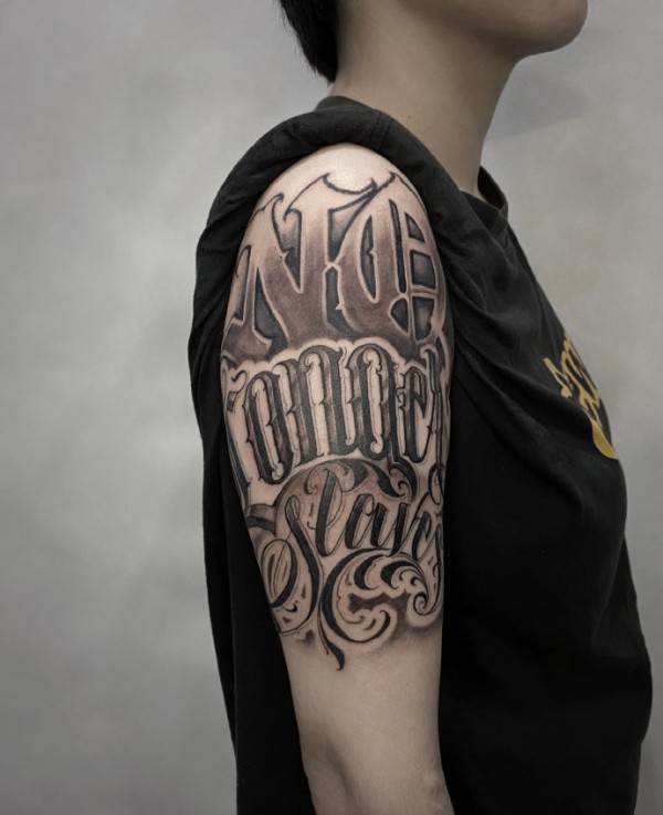 创意奇卡诺花体英文手臂纹身