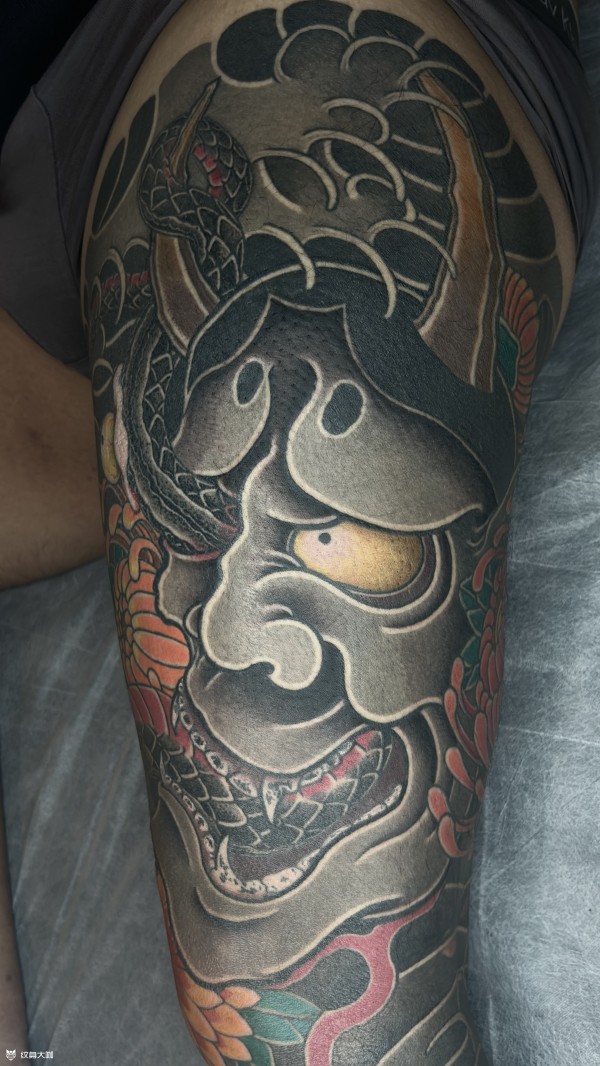 传统花腿纹身--18张传统风格的大花腿纹身图案作品