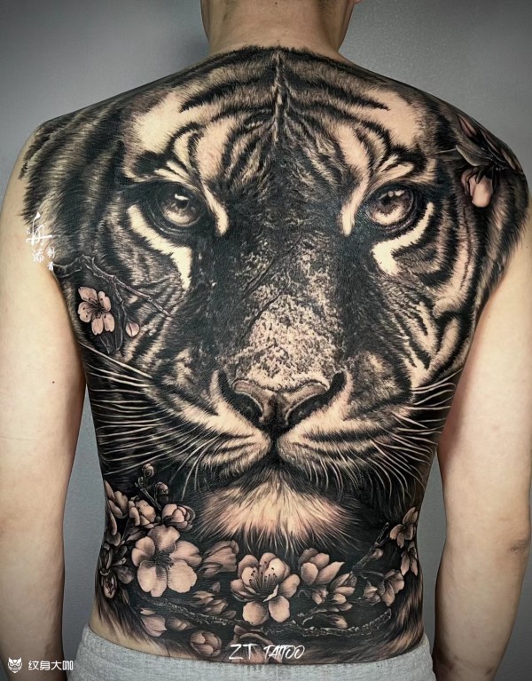 又一副老虎作品,这幅是遮盖作品《不怒自威———樱花
