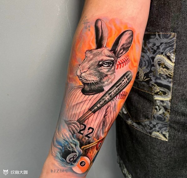 女生猫咪兔子个性手臂纹身_手臂纹身图案大全_纹身图吧