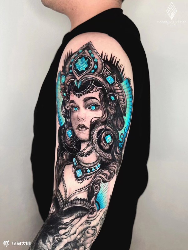 个性狂野美女霸气花臂纹身_手臂纹身图案大全_纹身图吧