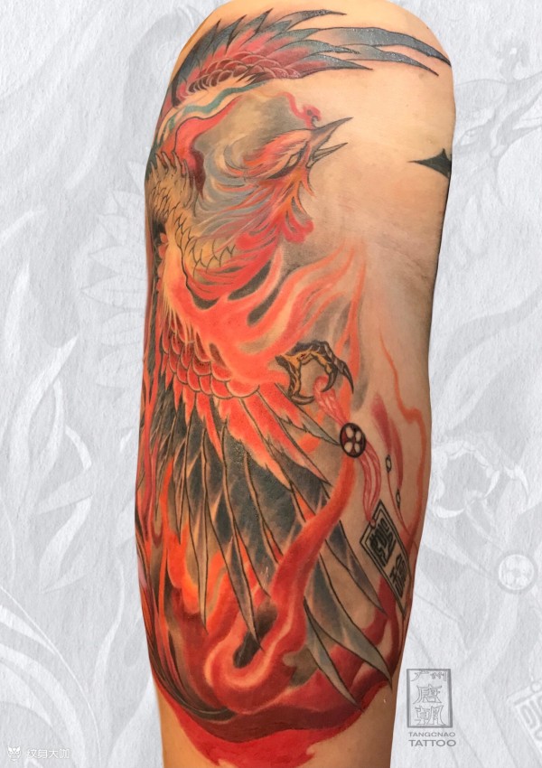 原创设计凤凰花腿花腿完成了从沟通到,设计,到成图,中间分几次完成,有我和客人2个人的努力才能得,这个效果,凤凰头部,和尾翼飘逸灵动,半包臀部,多是根据客人的身材,和身体位置像是量身设计,