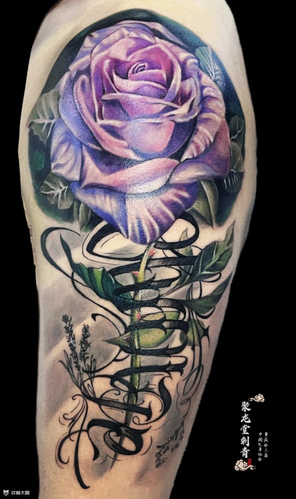 写实玫瑰花承载者来自一位空少,要求不雷同,独一无二,紫色的玫瑰花向上而生,外在一串字母,阳光照射,我们根据他的要求设计。最终效果他非常满意。