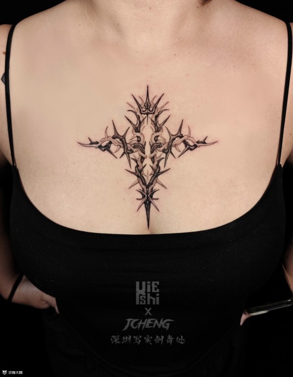 这是一个很让人遐想的纹身,我看到的时候邪恶_胸部纹身图案大全_纹身图吧