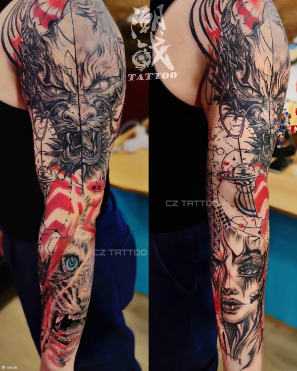 个性狂野美女霸气花臂纹身_手臂纹身图案大全_纹身图吧
