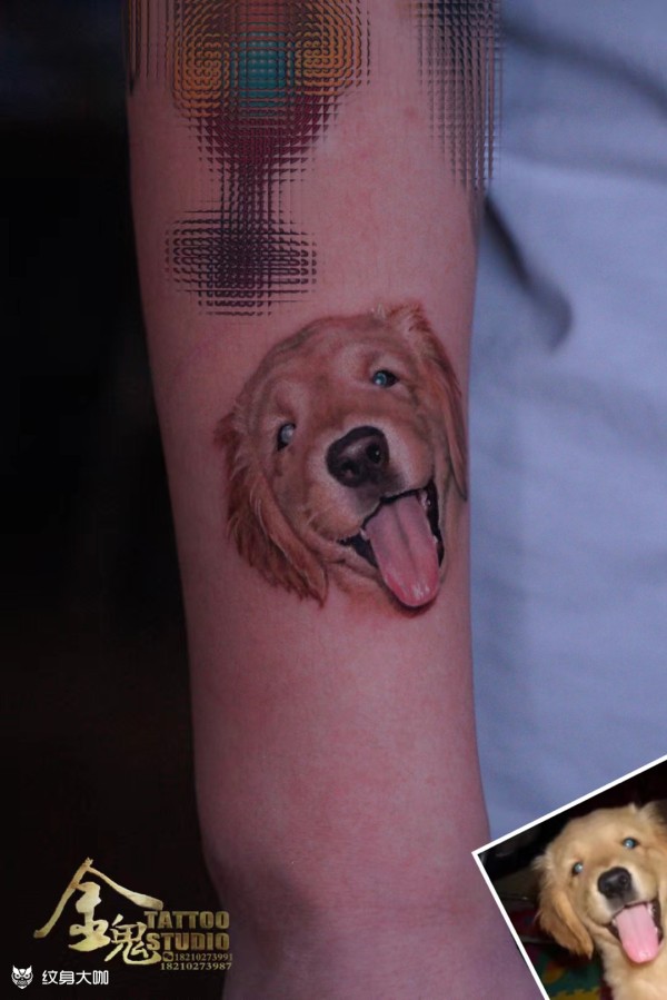 动物写实纹身这只金毛18岁 在上个月走了客人提供的照片有点模糊尽我所能还原高清晰一般金毛能活13-15年18岁也是很少见了可见这位客人对它照顾的非常用心