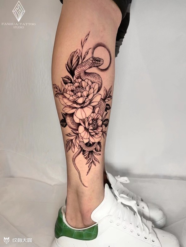 传统花腿纹身--18张传统风格的大花腿纹身图案作品