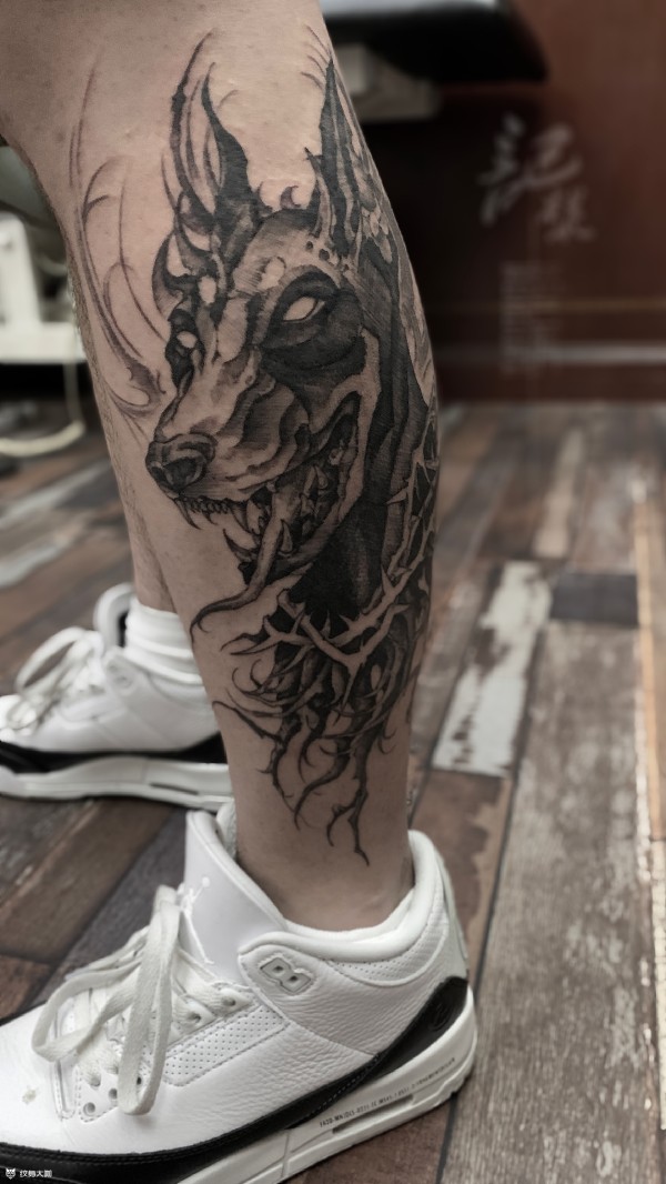 花腿纹身--一组大黑腿纹身图案作品欣赏