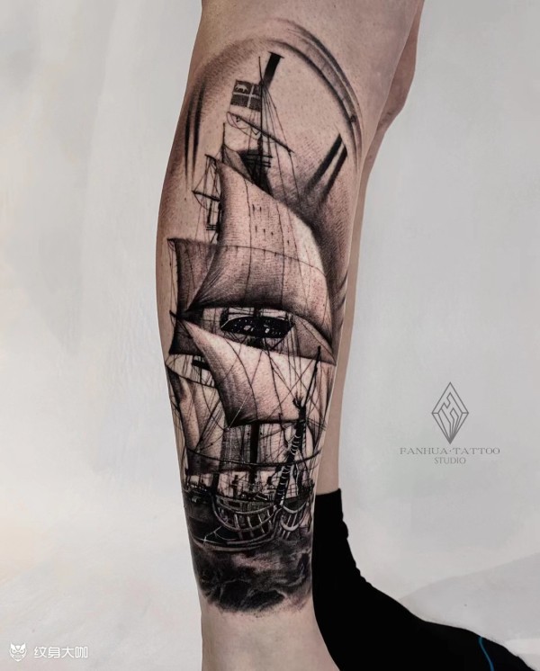 花腿纹身--一组大黑腿纹身图案作品欣赏