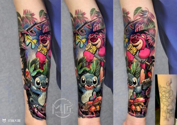 丛林冒险【旧纹身&疤痕遮盖】在梦幻多彩的热带丛林里,草莓熊把快乐注射给你,史迪奇把欢乐发射给你!
