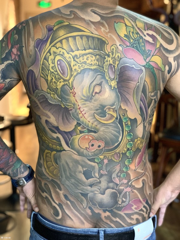 象神还差一点未完成,但是客人实在怕疼不打算纹了