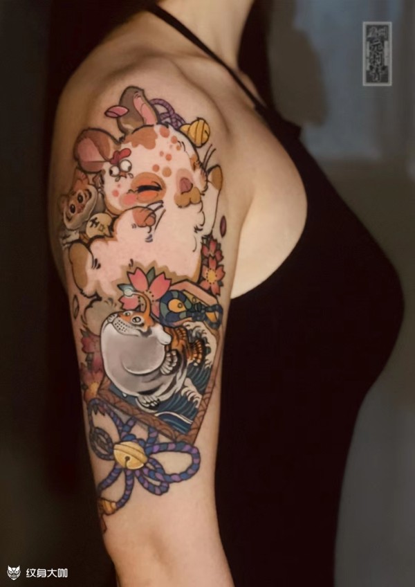 女生猫咪兔子个性手臂纹身_手臂纹身图案大全_纹身图吧