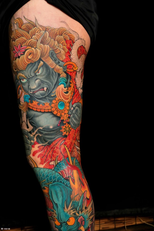 传统花腿纹身--18张传统风格的大花腿纹身图案作品