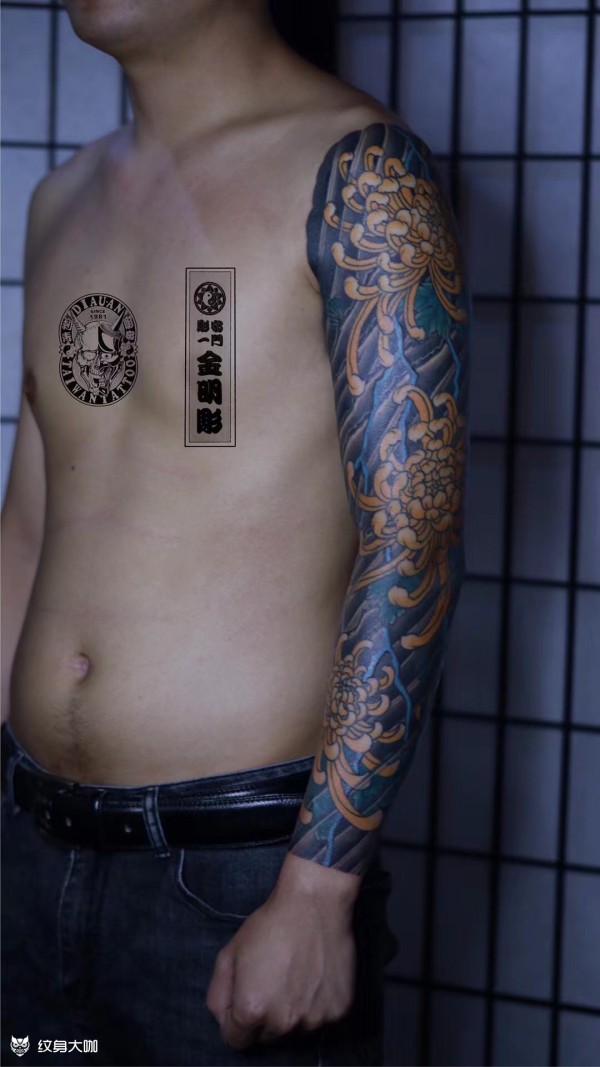 DIAU AN TATTOO 彫安刺青金明彫作品传统菊花花臂