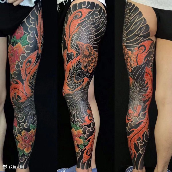 传统花腿纹身--18张传统风格的大花腿纹身图案作品