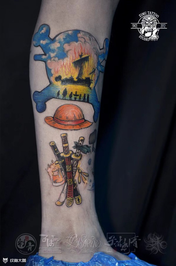 海贼王燃烧的梅丽号和他的船员们承蒙厚爱,多谢朋友支持与鼓励!纹身后还问我一张图稿签名留念,非常有仪式感,从业十年来的头一次