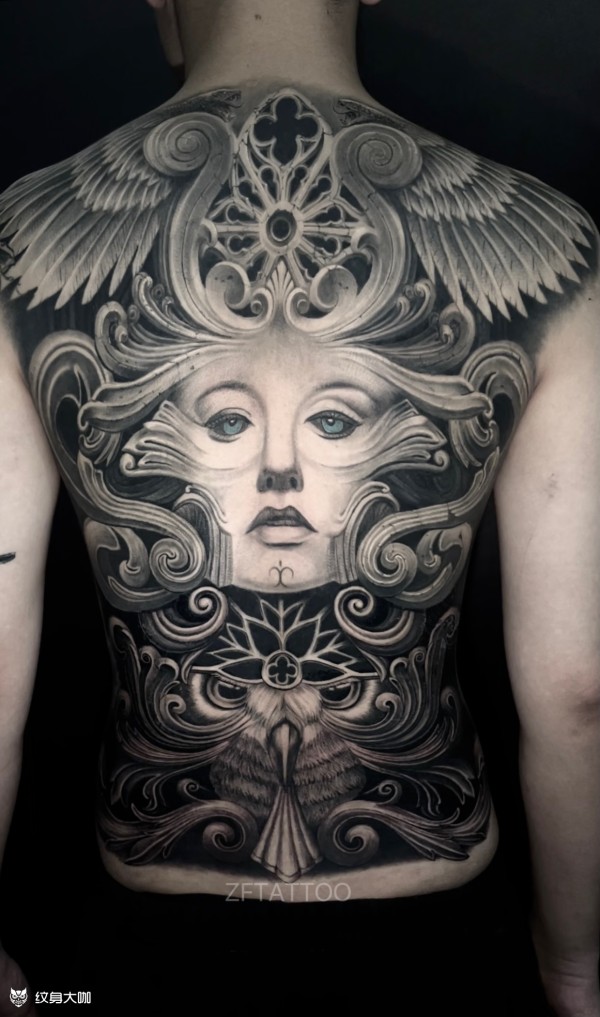 女性大满背纹身--9张女生霸气的大满背纹身作品图案欣赏
