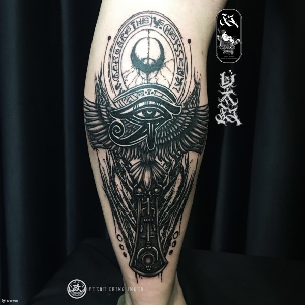 花腿纹身--一组大黑腿纹身图案作品欣赏