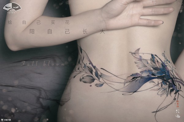 性感的一组女性臀部屁股上艳丽花朵纹身图案